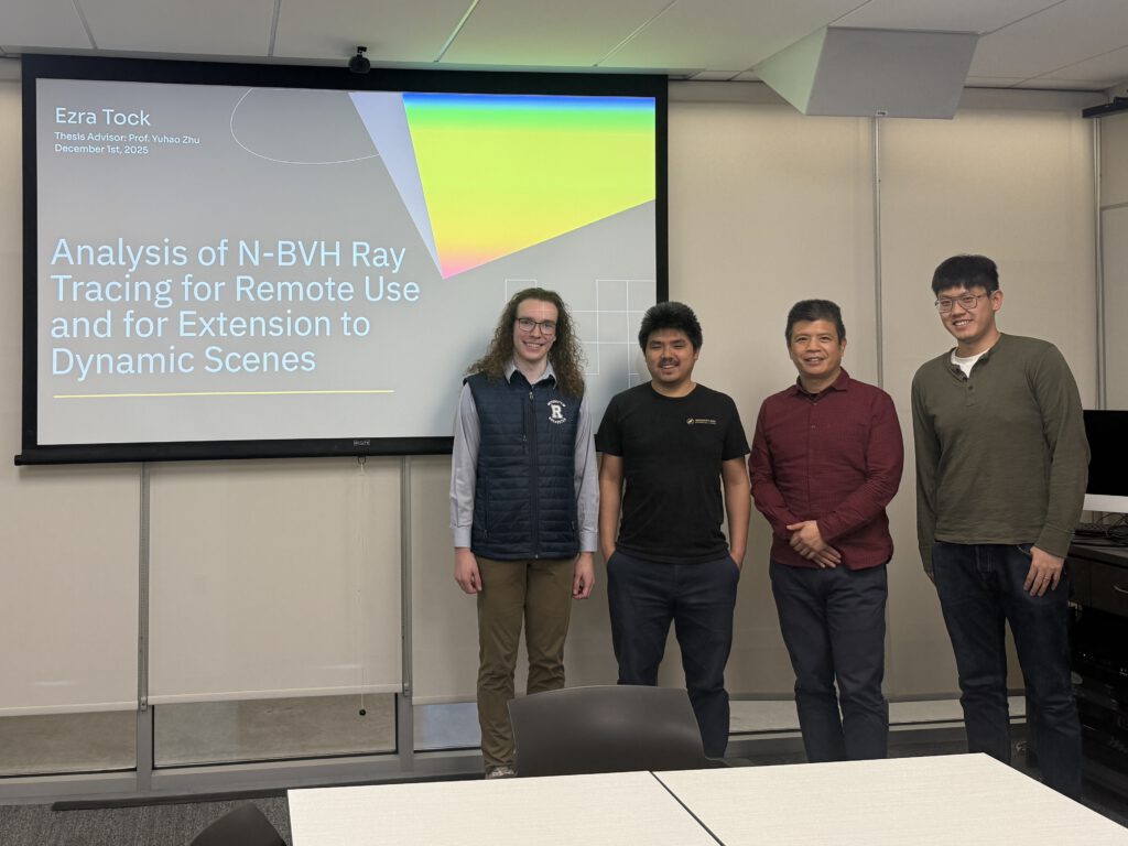 From left to right: me, Prof. Yuhao Zhu, Prof. Chen Ding, and Prof. Yukang Yang, after I successfully defended my thesis on December 1st, 2025.